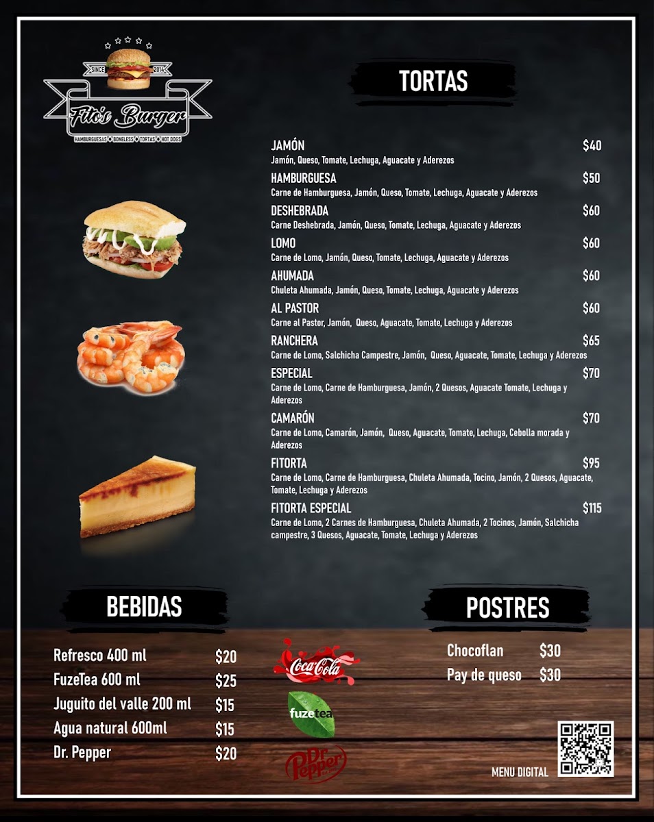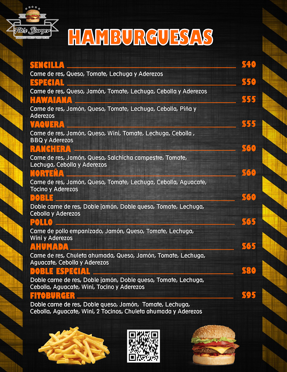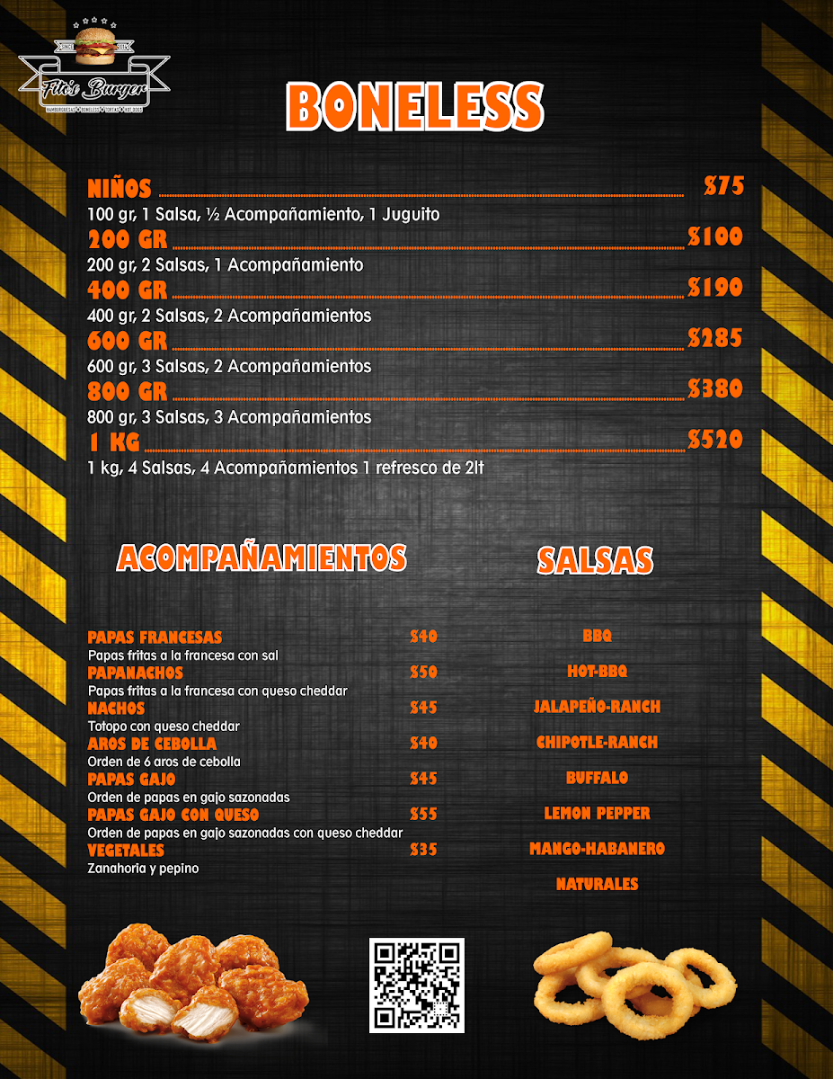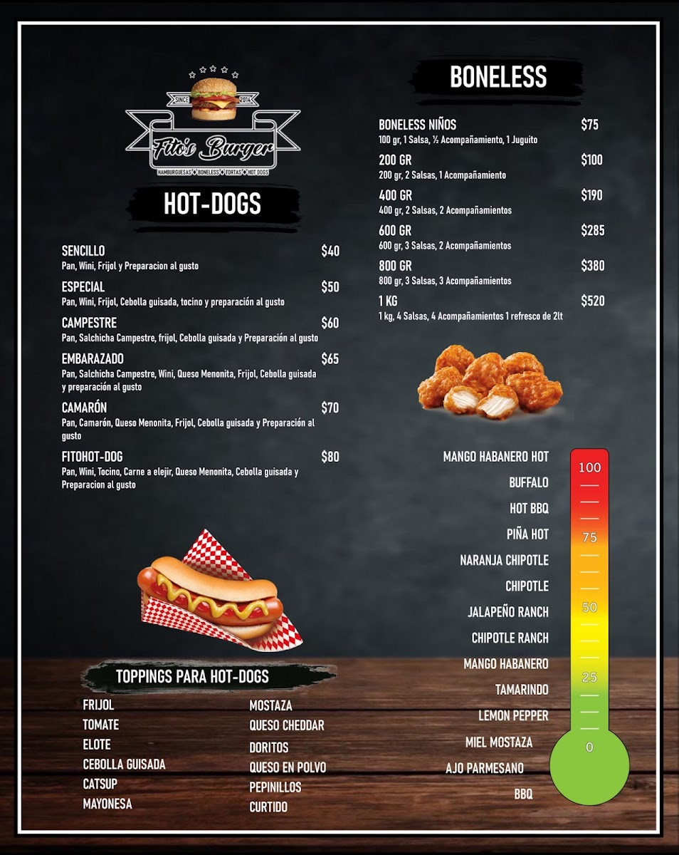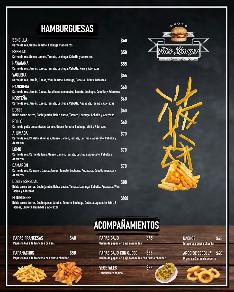 Fito's Burger Nogales offers a diverse menu that caters to a variety of tastes, all served with a unique twist. For burger lovers, the restaurant features a range of options, including the classic hamburguesas, alongside boneless and hot dogs. If you're in the mood for something a bit different, they also serve hearty tortas, which are sure to satisfy your cravings. Whether you're in the mood for a juicy burger or something more adventurous like their hot dogs or boneless, Fito’s Burger provides a satisfying experience with deliciously prepared dishes that cater to different preferences. While the menu doesn't provide specific prices, the focus remains on high-quality fast food made to please every palate.